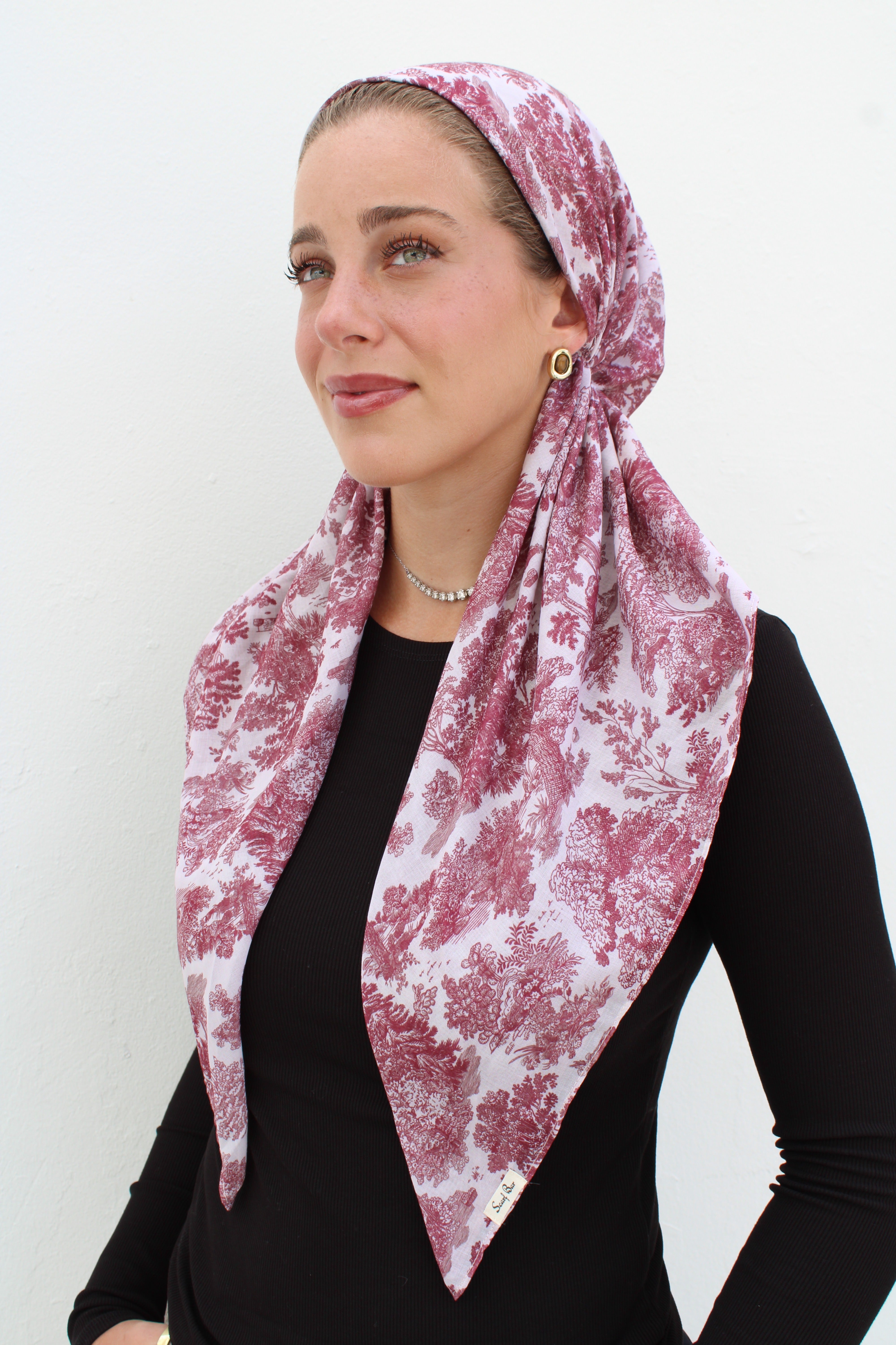 CLASSIC PRETIED Burgundy Toile Head Scarf (WITH VELVET GRIP)