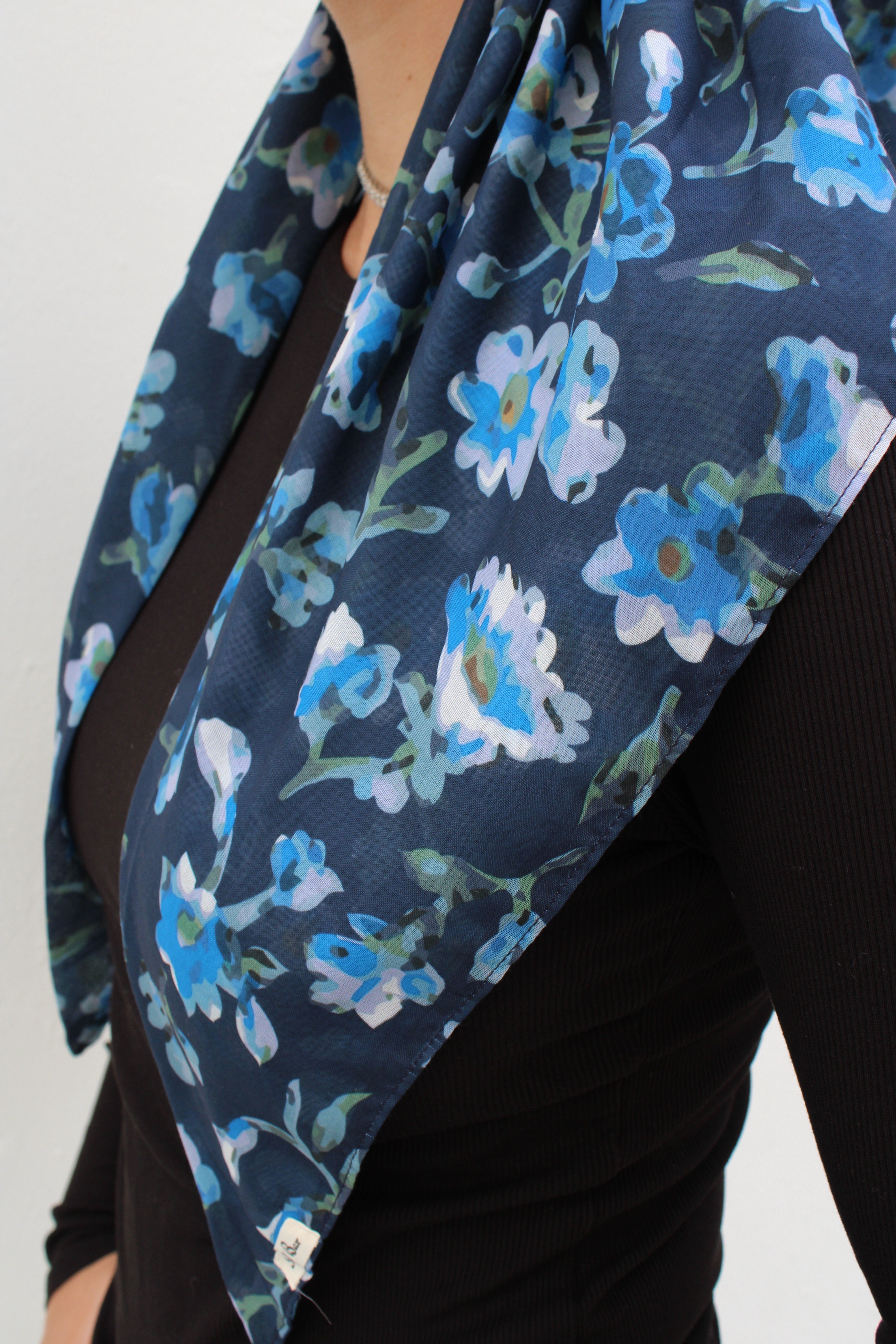 CLASSIC PRETIED Royal Blue Florals Head Scarf (WITH VELVET GRIP)