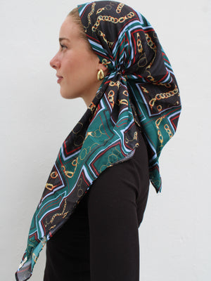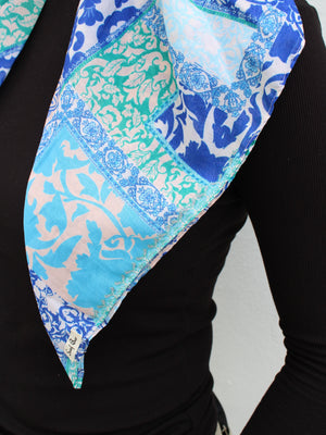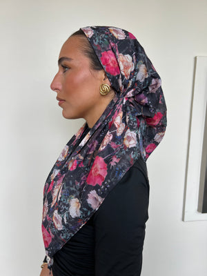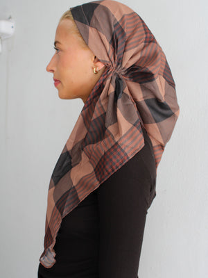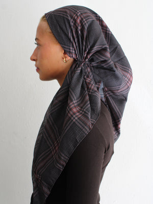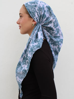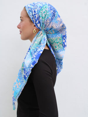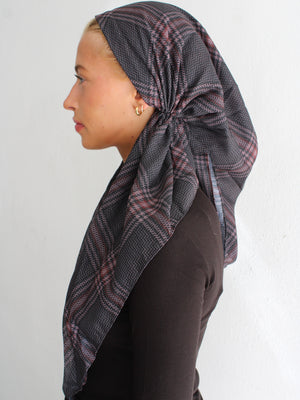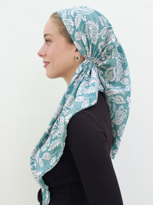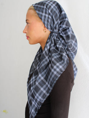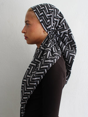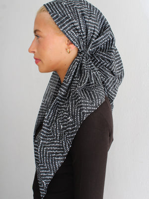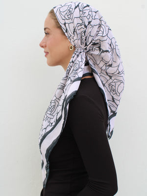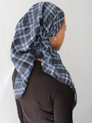 The Versatile Pretied has an open back. You can wear it as is or tuck the tail into the adjustable band. You can also take the two ends and make an additional knot for a more snug fit. This scarf fits all head sizes.