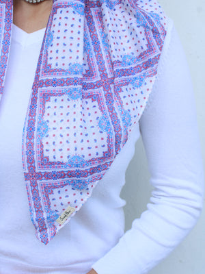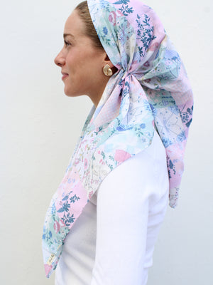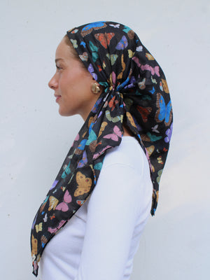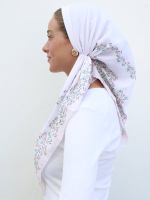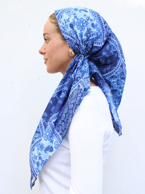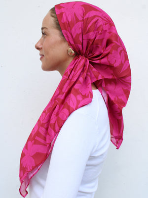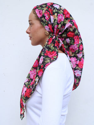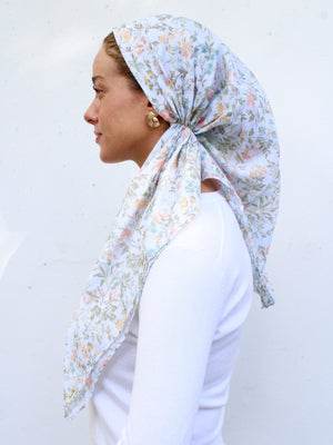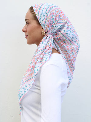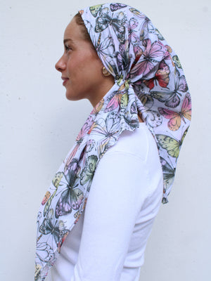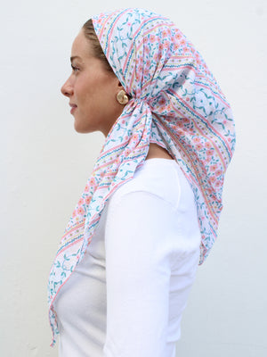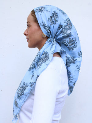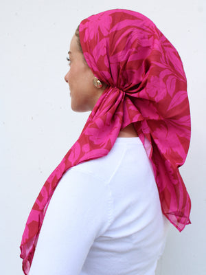 The Versatile Pretied has an open back. You can wear it as is or tuck the tail into the adjustable band. You can also take the two ends and make an additional knot for a more snug fit. This scarf fits all head sizes.